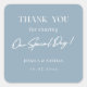 This elegant wedding square sticker is the perfect way to thank your guests for sharing your special day. The sticker features the words "Thank You for Sharing Our Special Day!" in a beautiful font. The sticker is also customisable with your names and wedding date, so you can create a unique and personal touch.