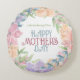 Personalise Beautiful and clean Four Flowers Watercolor Mother' Day Round Pillow. PERSONALIZE and EDITABLE text. Fill with your own words. Choose your preferred fonts available in the store.