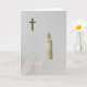 Personalise Gold Holy cross, candle and pink bow Card