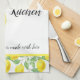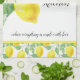 Personalise this country-style lemon pattern kitchen towel with your name and "saying". This cheerful yellow and white colour towel would be a thoughtful birthday or housewarming gift for her.