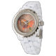 Personalise (add text or change an image) Monarch butterfly on tithonia flower on Women's Rhinestone White Enamel Watch or on any Watches.