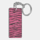 Personalise name fuchsia pink glitter zebra stripe key ring