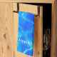 Personalise Name, White Script, Blue Pool Water Tea Towel