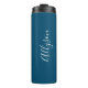Personalise Name White Script Vertical Ocean Blue Thermal Tumbler