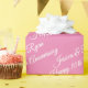 Personalise names, Happy Anniversary in white script on Pink Background Wrapping Paper. Just add a bow.
