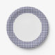 This is a cute paper plate for your parties. It features a navy blue gingham pattern around the edge. The centre is white. It is ready for you to personalise it with your wedding date, expected due date, birthday, anniversary etc.