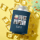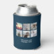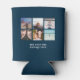 Personalised photo can cooler for guys featuring photo collage with 6 front and back square pictures (12 total), on blue background, with room for your message. Easily design your own can cooler and upload your favourite image today.