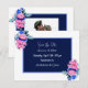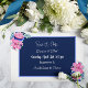 Personalised wedding Save the Dates with pretty watercolor pink and blue flowers with white font. Elegant floral wedding theme. Add couple's photo in the personalise area.