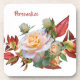 Add some romance with a personalised beverage coaster set. Pink Rose Flowers & Autumn Red Leaves. Personalise with name, initials, message, quote or anything you desire. Perfect for special events, parties, or adding a colour accent to your home or room decor.