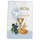 What a wonderful congratulations gift, souvenir, giveaway and party essential about RCIA! A beautiful illustration of sacrament symbols, grapes, bread, wheat, a chalice and a white dove that represents the Holy Spirit. This you need to congratulate someone special on their initiation.