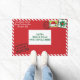 This Personalise Christmas doormat is a Santa letter that you can personalise with your family name in the return address area and you can make your own Santa address or Merry Christmas message in the send address area. this design is a bold red envelope with candy cane striped edges, two Christmas mailing stamps and postal marks. A super cute Christmas doormat to celebrate the Christmas season with festive holiday cheer.