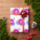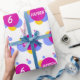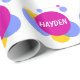 Fun and personalised kid's birthday age gift wrap with colorful dotty pattern.