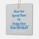 at christmass as a hanging decration for the chritmass tree.. its white porcline or cramic but very well made with added photo on one side.. also has a lovley red bag to keep it in.. execlent printed text in bold and black stands out well aganst the blue background of the photo.