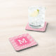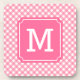 Personalise Stylish Baby Pink Gingham Monogram Coaster