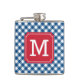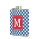 Personalise Stylish Blue Gingham Monogram Hip Flask