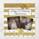 Personalise this Gold Anniversary Wine Bottle Label, gold heart and bow background. Just upload your favourite pictures of mum and dad such as their wedding photo and a photo of them now.