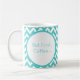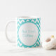 Aqua Turquoise Chevron Zigzag pattern "But First, Coffee Then I Do The Things" Coffee Mug. You can personalised both sections with your own words.