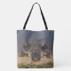Personalise (add your text or change the image) of an American alligator with open mouth - (Florida wildlife) on the shore photography and another alligator laying & watching face to face - designed on Zazzle Tote Bags.