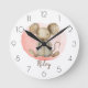 Personalise Watercolor Mouse Nursery Girl’s Room Round Clock