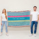 Personalised Sofa Blanket Zig Zag Aqua Pink Green and Yellow Pattern or Any Colour - Custom Colour Sofa Blanket - Click Customise to change colour