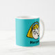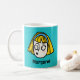 This coffee mug has Personalise Your Name with a Funny Cartoon Face on Blue Green Background.
