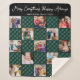 Personalised 13 Photo Collage Green Plaid Quilt Sherpa Blanket