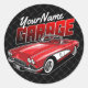 Personalised 1961 C1 Red Classic Sports Car Garag Round Sticker