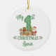 Celebrate baby's first Christmas with this adorable and personalisable Christmas tree bauble decoration. This cute and whimsical design features santa and an elf with their woodland creature buddies.