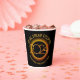 Personalised 2024 TOTAL SOLAR ECLIPSE Paper Cups in BLACK, with CUSTOMIZABLE TEXT, to celebrate the Total Solar Eclipse over Continental USA, Canada and Mexico in April 2024. The CUSTOMIZABLE TEXT reads TOTAL SOLAR ECLIPSE and [FAMILY NAME] Watch Party. You can use the top curved text field for a longer sentence if required (and delete the bottom curved text). The design shows a solar eclipse with gold-effect 2024 in the middle. Buy these solar eclipse Paper Cups for all the family or for your watch party guests! The totality will be totally worth it! Matching party supplies available. Also in white.