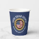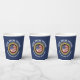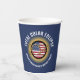 Customisable 2024 TOTAL SOLAR ECLIPSE USA Paper Cups in BLUE, with CUSTOMIZABLE TEXT, to celebrate the Total Solar Eclipse over Continental USA, Canada and Mexico in April 2024. The CUSTOMIZABLE TEXT reads TOTAL SOLAR ECLIPSE and [FAMILY NAME] Watch Party. You can use the top curved text field for a longer sentence if required (and delete the bottom curved text). The design shows a solar eclipse with gold-effect 2024 in the middle and the USA flag behind it. Buy these USA solar eclipse Paper Cups for all the family or for your watch party guests! The totality will be totally worth it! Matching USA party supplies available.