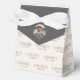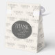 Celebrate your graduate's achievement in style with personalised favour boxes! Featuring a chic cream and charcoal grey design, these boxes showcase a repeating "Congrats" message that includes the graduate's name. The flap highlights your graduate's photo cropped inside an elegant grad frame, along with the class year. The back includes a heartfelt printed message: "Thank you for celebrating with us!" © Kimbellished, LLC