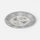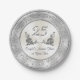 Stunning Silver coloured Personalised 25th Wedding Anniversary Paper Plates With the Couple's NAMES and DATE(S) or Delete. Swirls of silver on champagne off white satiny look background with a large 25 celebrating 25 years of marriage or your special 25th anniversary celebration.