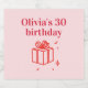 Elevate your birthday celebration with this personalised 30th birthday wine label. Designed in a blush pink background with bold red text and a fun gift box illustration, this modern label is perfect for champagne, prosecco, or wine bottles. A stylish way to tie your drinks into the party theme and impress your guests.