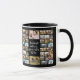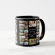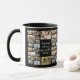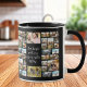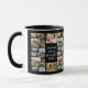 Create your own custom quote photo collage mug. Features 34 of your favourite pictures and personalised text in modern calligraphy typography. Print is repeated on front and back.