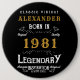 A personalised huge button / pin badge for that birthday person born in 1981 and turning 40. Add the name to this vintage retro style black, white and gold design for a custom 40th birthday gift. Easily edit the name and year with the template provided. A wonderful custom black birthday gift. More gifts and party supplies for that 40th party celebration available with the "Legendary" design in the store.