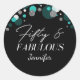 Personalised 50 and Fabulous Black and Teal Classic Round Sticker
