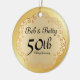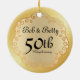 Elegant gold medallian 50th Wedding Anniversary Christmas ornament.. The soft smooth background has a gold medallion design on it. The organic medallion ship is outlined in a deep bronze gold and the interior is a light bronze gold. The couple's name is written in a pretty script. 50th Wedding Anniversary is below. Easy to customise.