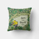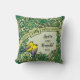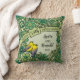 Here is a whimsical intricate floral themed 55th wedding anniversary pillow that you can personalise for a special bride and groom! Two prothonotary warblers perch on a decorative floral pattern border made of flowers and artistic swirls in shades of green. The birds sit beside a space for two names and a wedding year in script text.