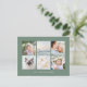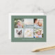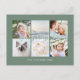 Personalised 6 family photos professional sage green Universal Greetings Postcards featuring a stylish photo collage with 6 customised images, your greetings message in elegant handwritten script font, your name, date, year, message on the back in a modern and simple sans serif font.
