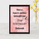 This card is great fun and good quality. I loved the humour inside and on the back. There is the opportunity to change the orientation of this card from landscape to portrait, which I did. It is relatively straightforward to amend the typeface to fit the new orientation. It was well packaged with no plastic. The printing on this card is excellent.