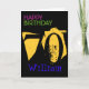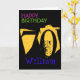 Customisable 70th Birthday Greeting Card with ochre-yellow large number and name in dark blue. Perfect for him. You can easily change text (colour, font, size and position) by clicking the customise button. Other models are available.