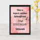 This card is great fun and good quality. I loved the humour inside and on the back. There is the opportunity to change the orientation of this card from landscape to portrait, which I did. It is relatively straightforward to amend the typeface to fit the new orientation. It was well packaged with no plastic. The printing on this card is excellent.