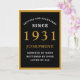 90th birthday black and gold birthday card for those special people born in 1931. Easily customise the text to the front and the interior of this birthday card using the template provided. Part of the setting standards range of greeting cards.