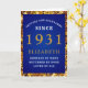 Personalised 90th Birthday 1931 Blue Gold Elegant Card