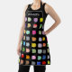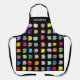 This apron is decorated with a colourful watercolor abstract pattern on a black background.