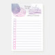 Chic and trendy personalised to do list pad which you can customise with your name. The design features modern abstract shapes, lines and doodles with hand-drawn checkboxes, whimsical typography and typewriter text. It has a colour palette of grey pink lilac magenta purple.