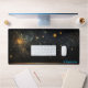 Bring the exotic beauty of this abstract wood panel, a chalkboard with colourful drawings from the mind of a ingenious artist into your workspace with this exquisite desk mat. Personalise it with a name printed on the lower right corner. This mat features a view of a crowded workbench of a busy inventor with a high-quality print from a high definition graphic. It provides a smooth and comfortable surface for your work for your laptop, keyboard and mouse. It can also transform your workbench with a stylish and elegant touch. Perfectly suited for all creators, artists, writers and anyone inspired.