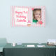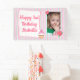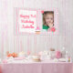 Add your daughter's picture and age to this pretty pink Birthday Banner.Pink and teal blue stripes with flowers and a cute whimsical cupcake.