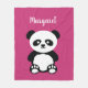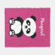 Personalised Adorable Panda Bear Girls Pink Kids Fleece Blanket. Three sizes. Pretty hot pink background with black and white panda bear.. Personalise with name. Customise to change background colour or font. www.SamAnnDesigns.com