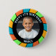 Birthday Boy button. Happy Birthday to you, add name, age and photo to this personalised birthday button. Retro pop art black, orange, blue and green background.